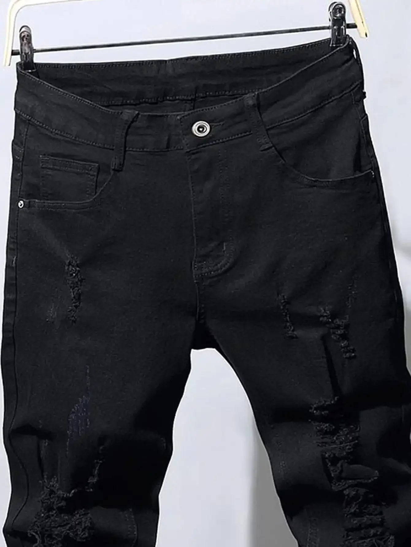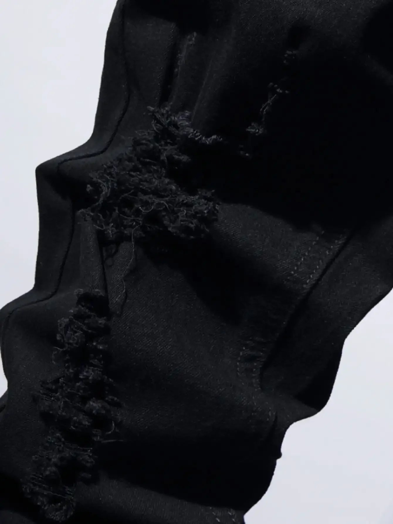 Cherub Men Slim Biker Ripped Long Denim black jeans