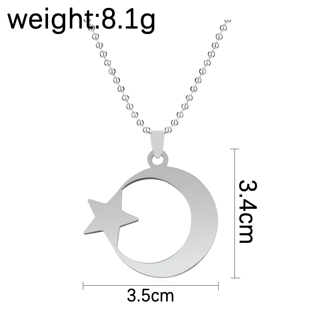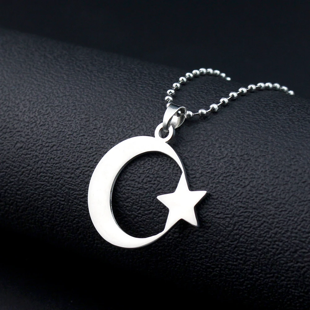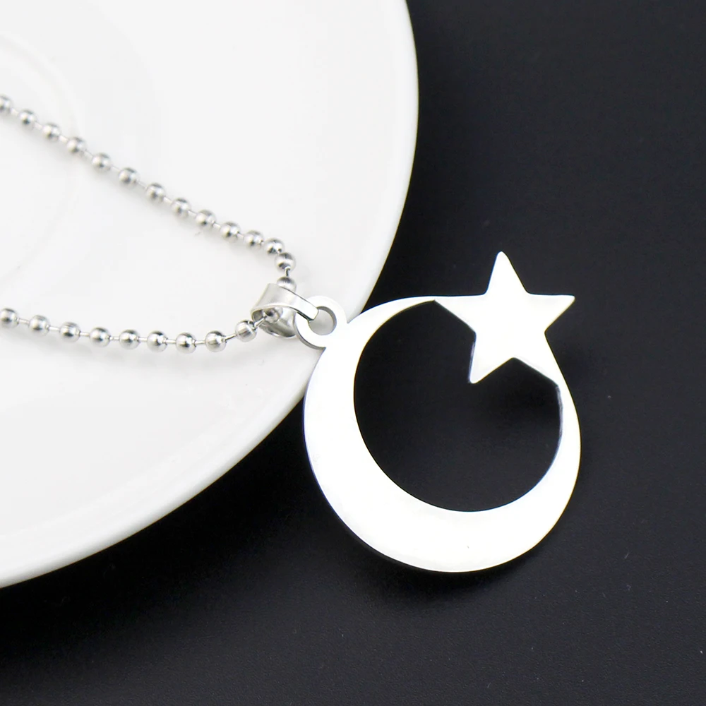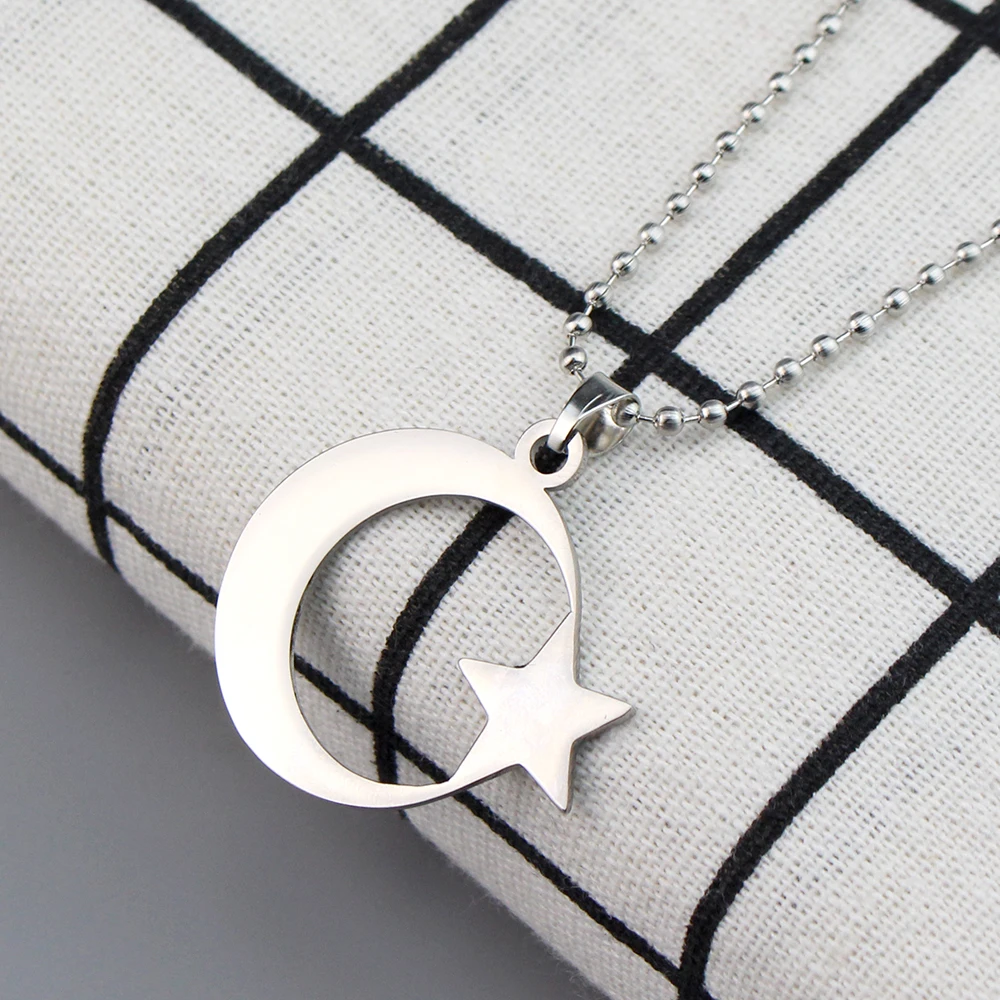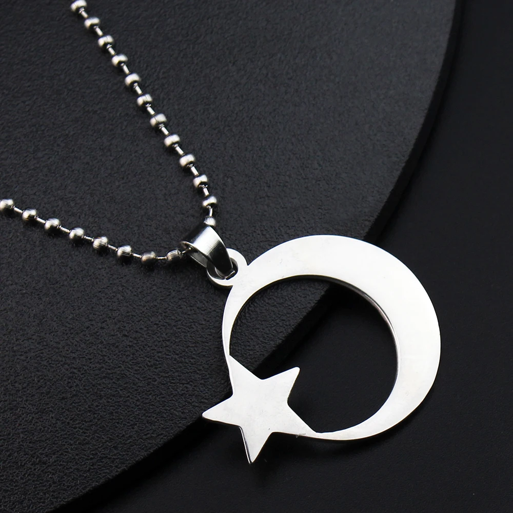 cherub Stainless Steel Crescent Moon and Star Silver Necklace