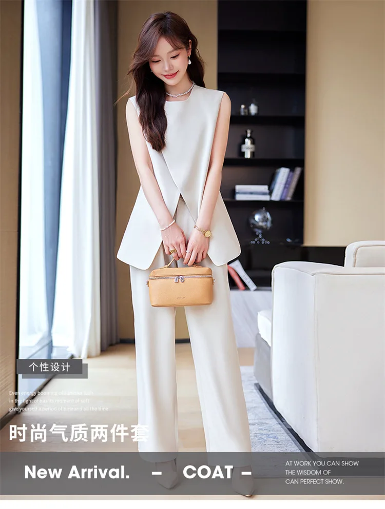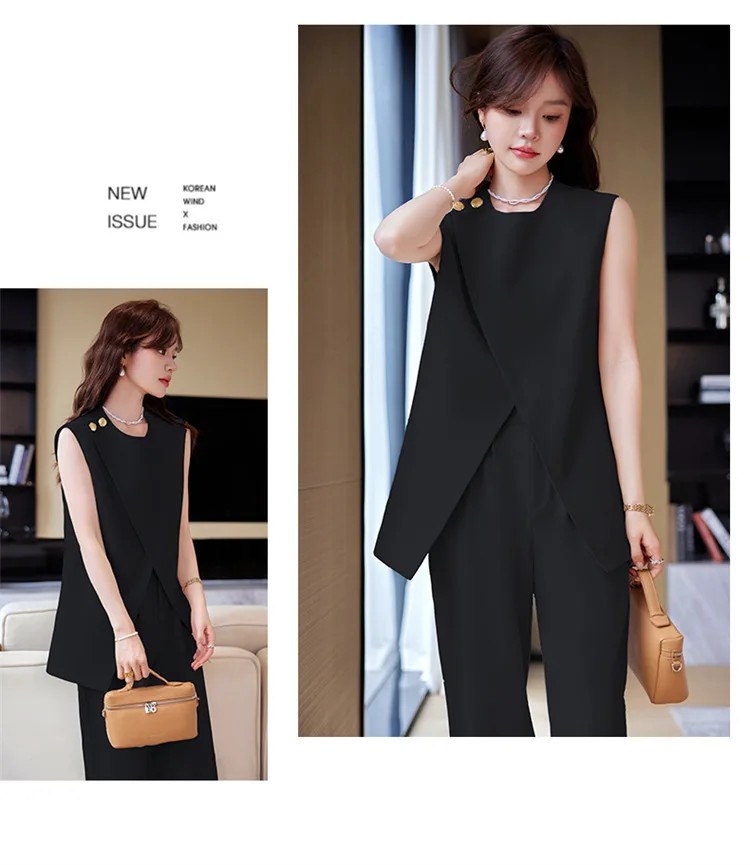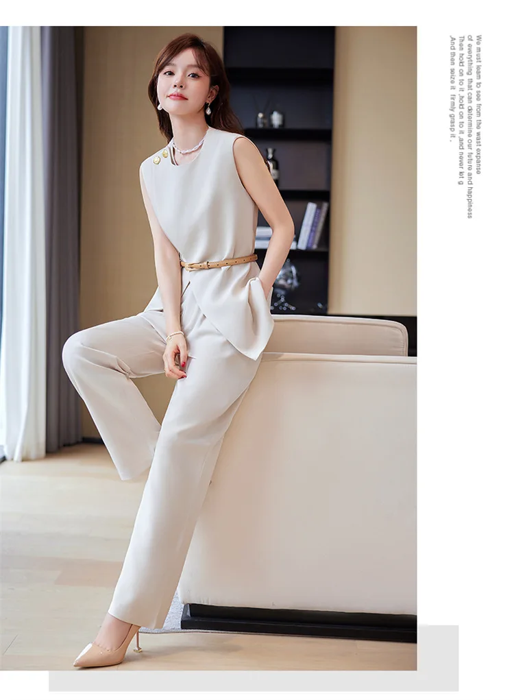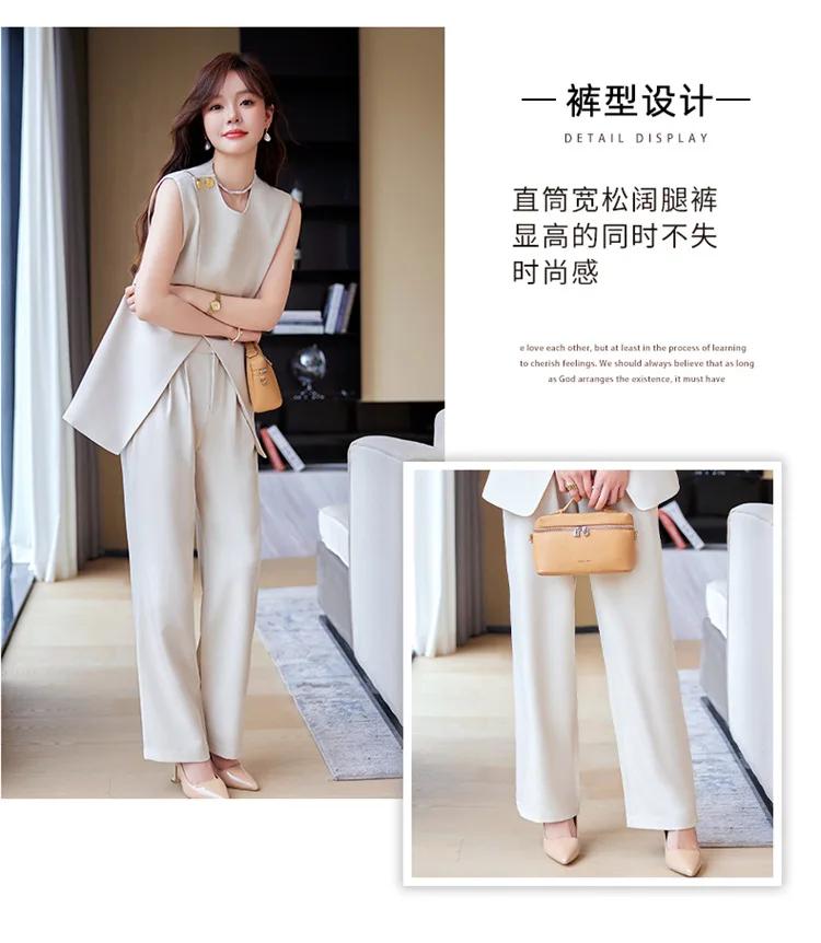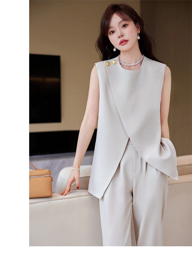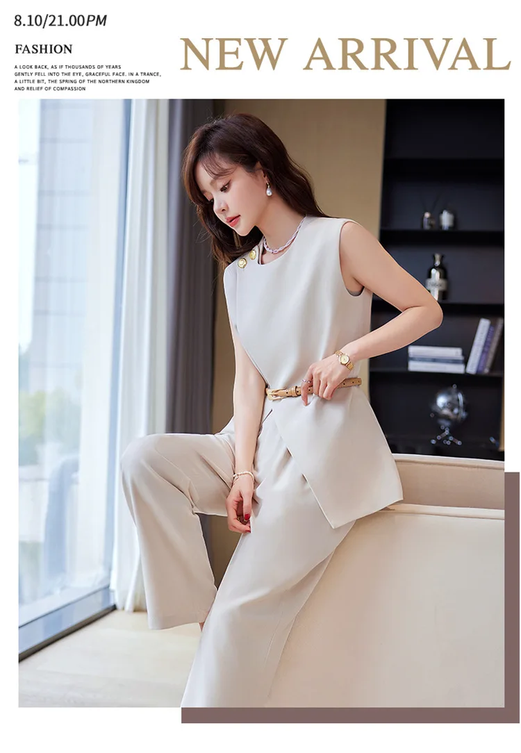 Cherub Summer Loose O-Neck Top Wide Leg Pants Two Piece New Elegant Pullover Pants .Cotton Linen Suit