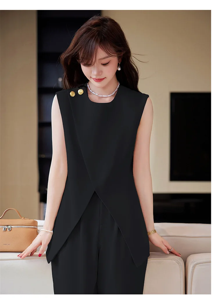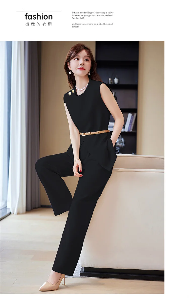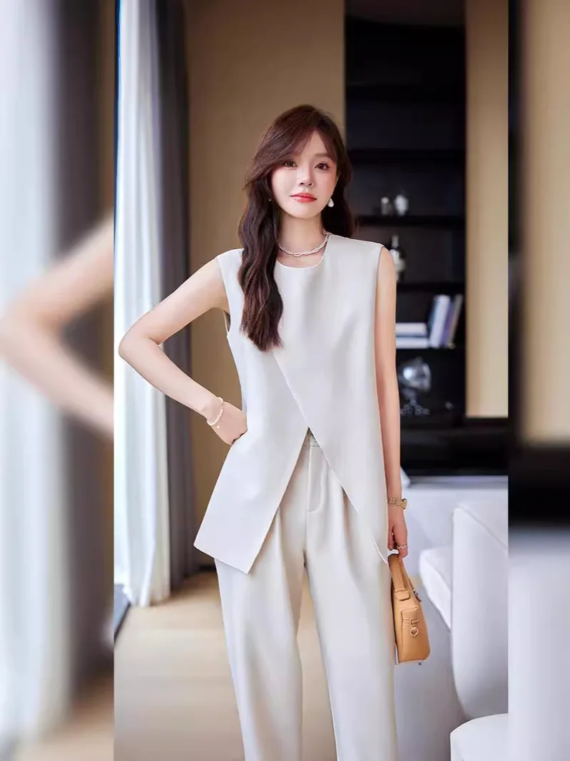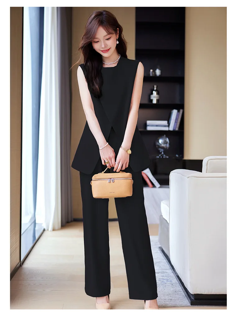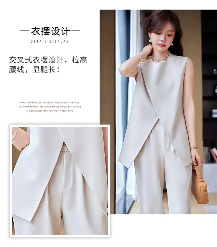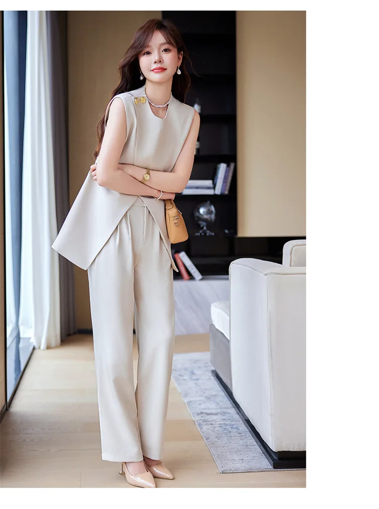 Cherub Summer Loose O-Neck Top Wide Leg Pants Two Piece New Elegant Pullover Pants .Cotton Linen Suit