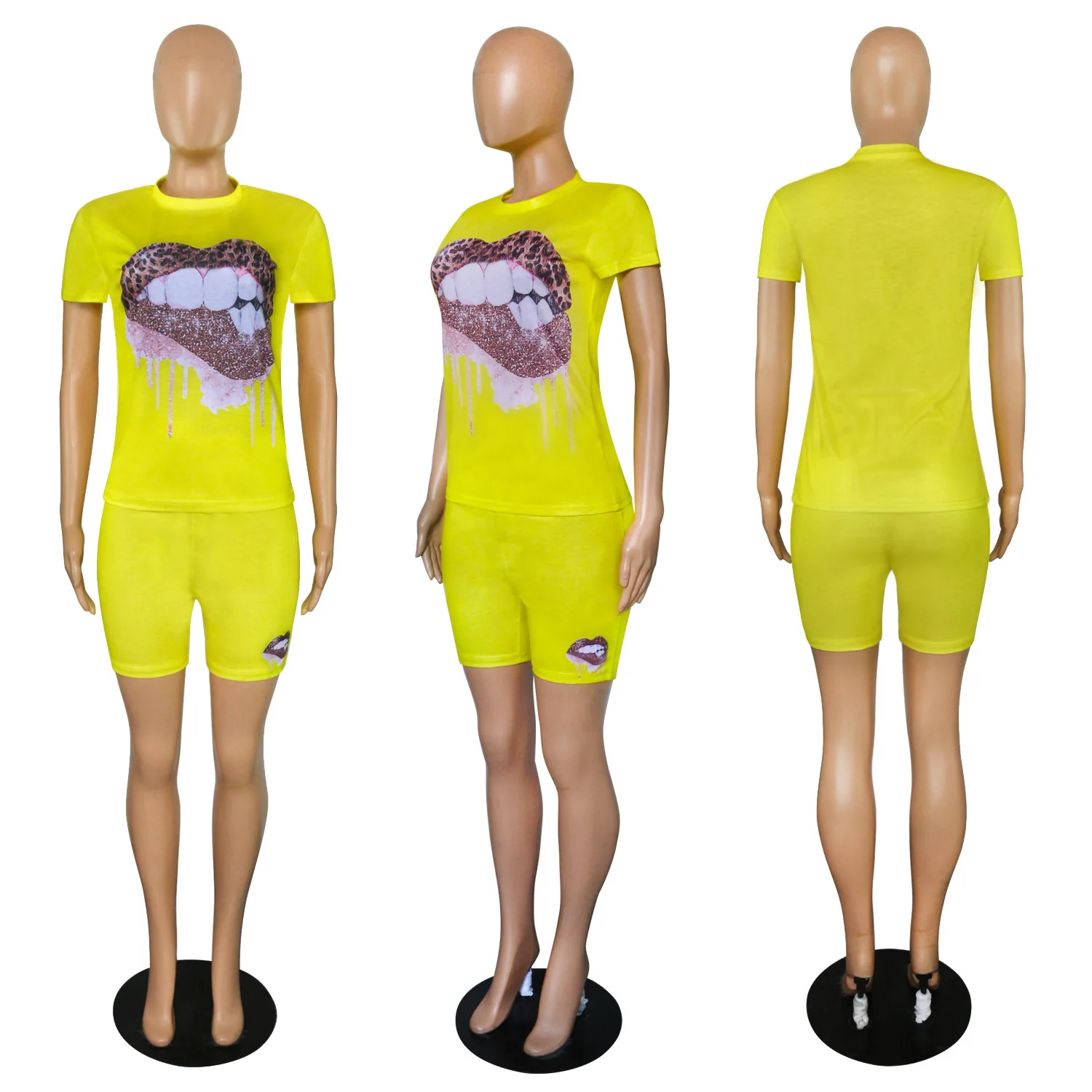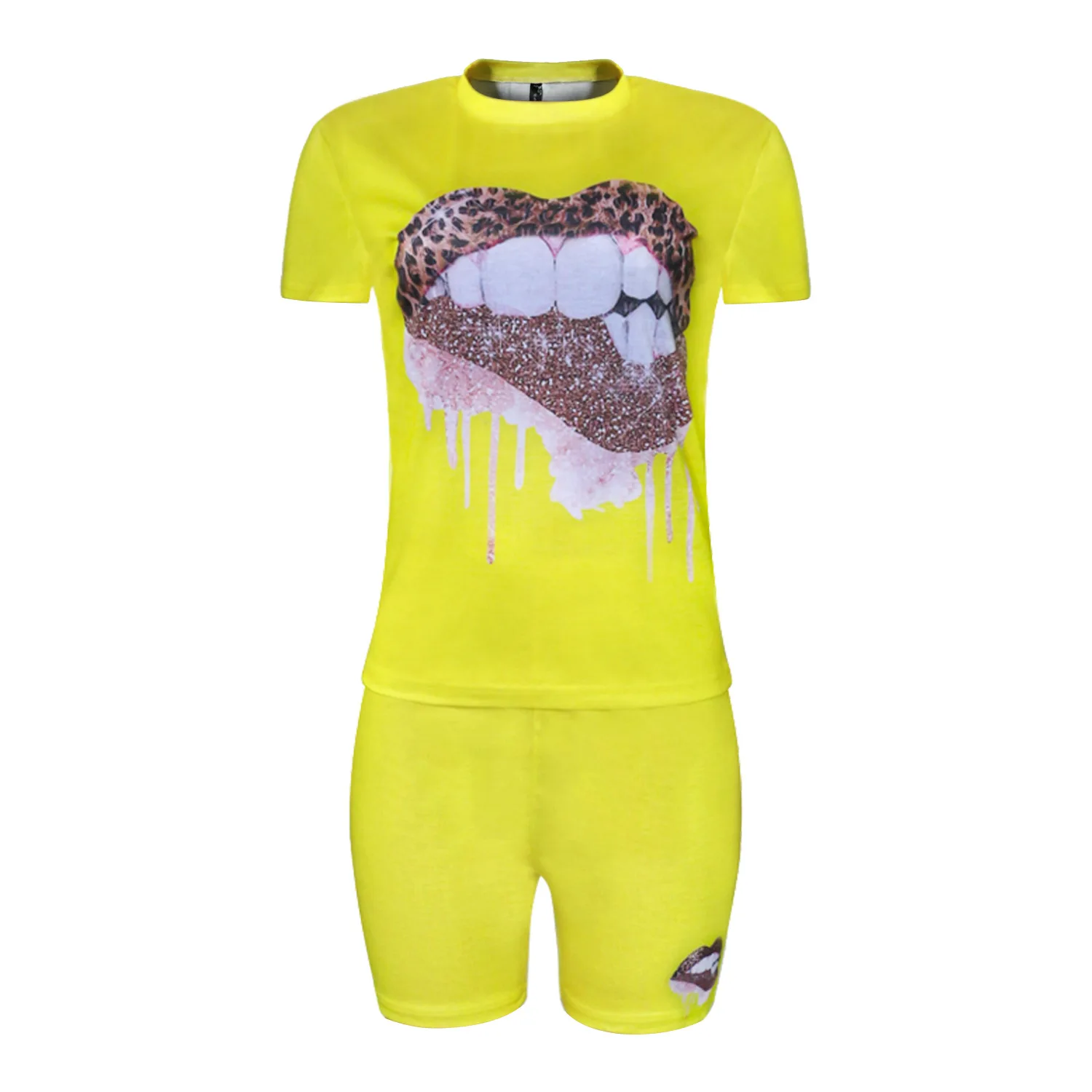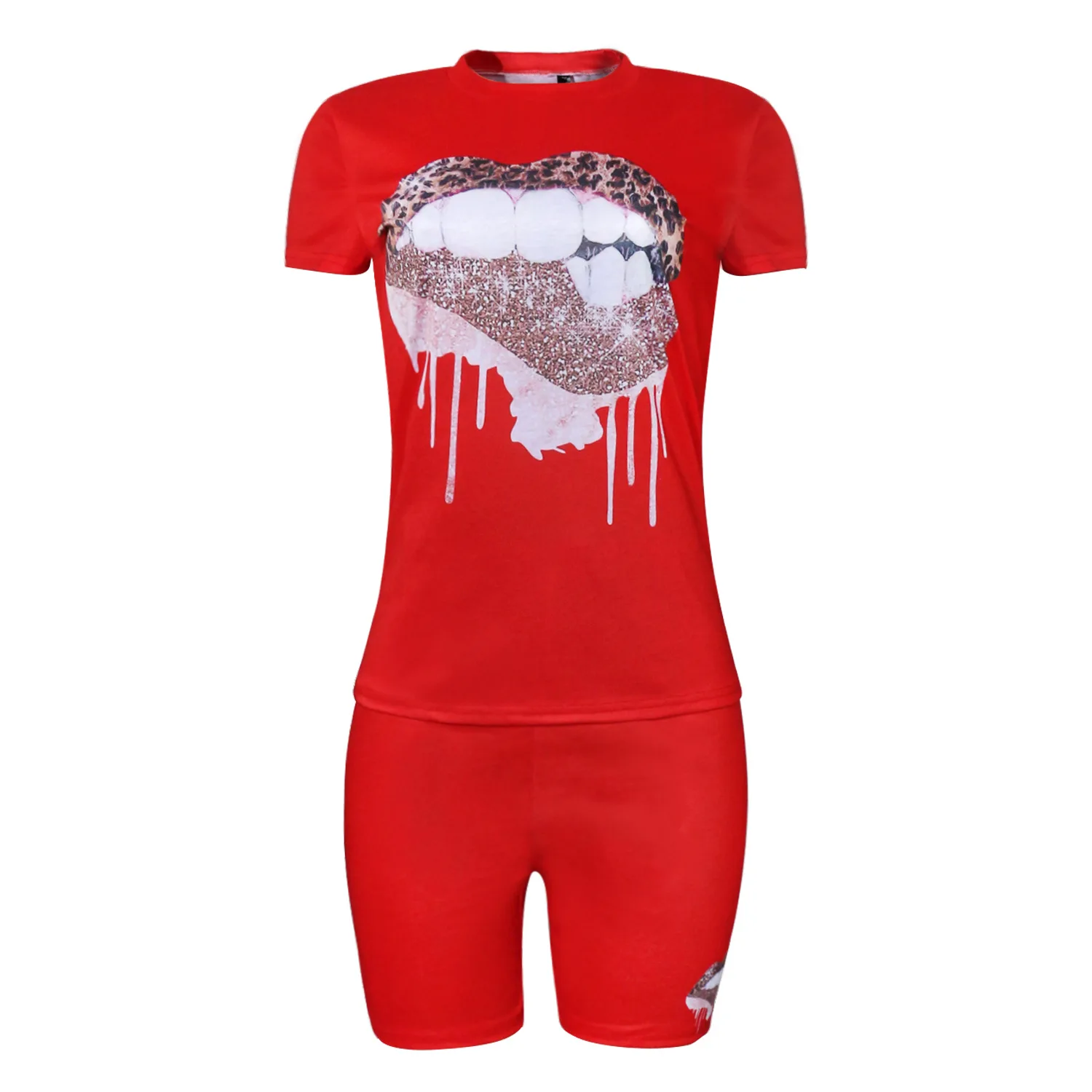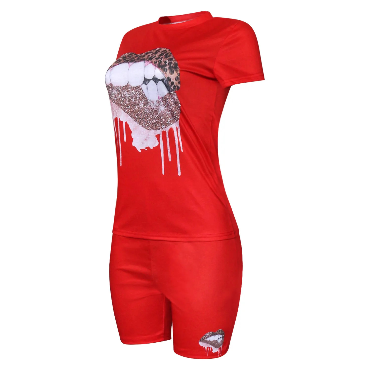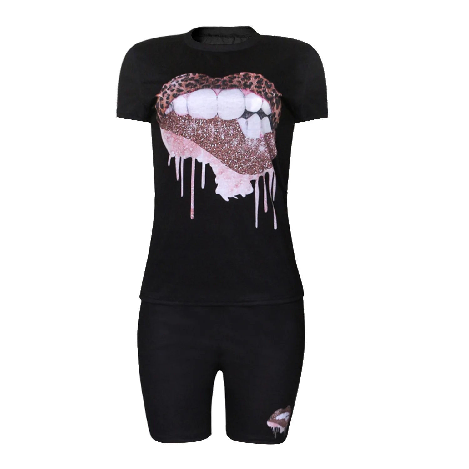 Cherub Women Kiss Two Piece Sets / jogging Tracksuits Short Sleeve Pants Suit Print Casual Outfits Urban Women Clothes