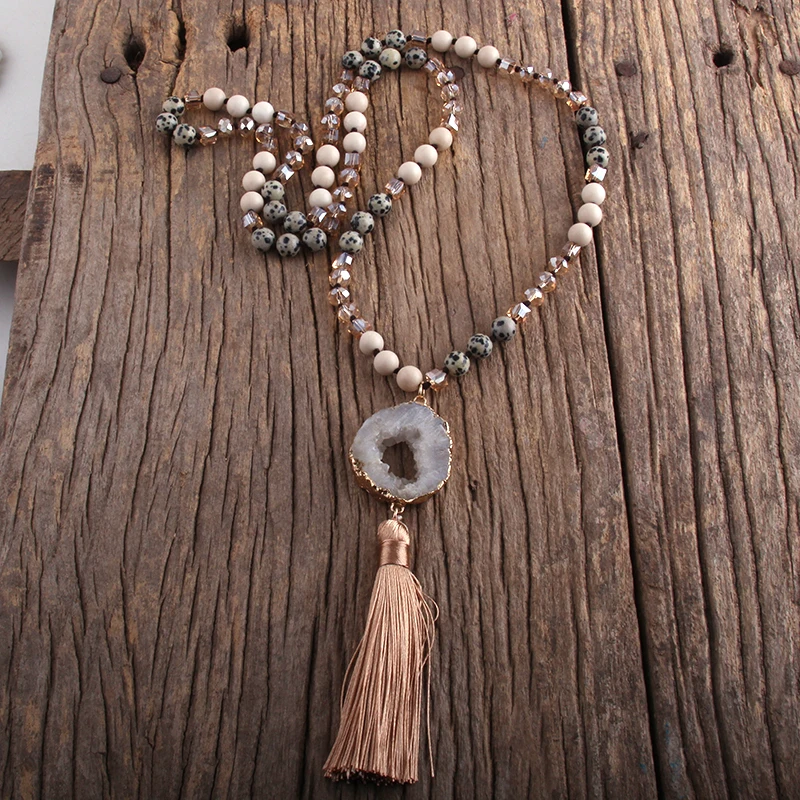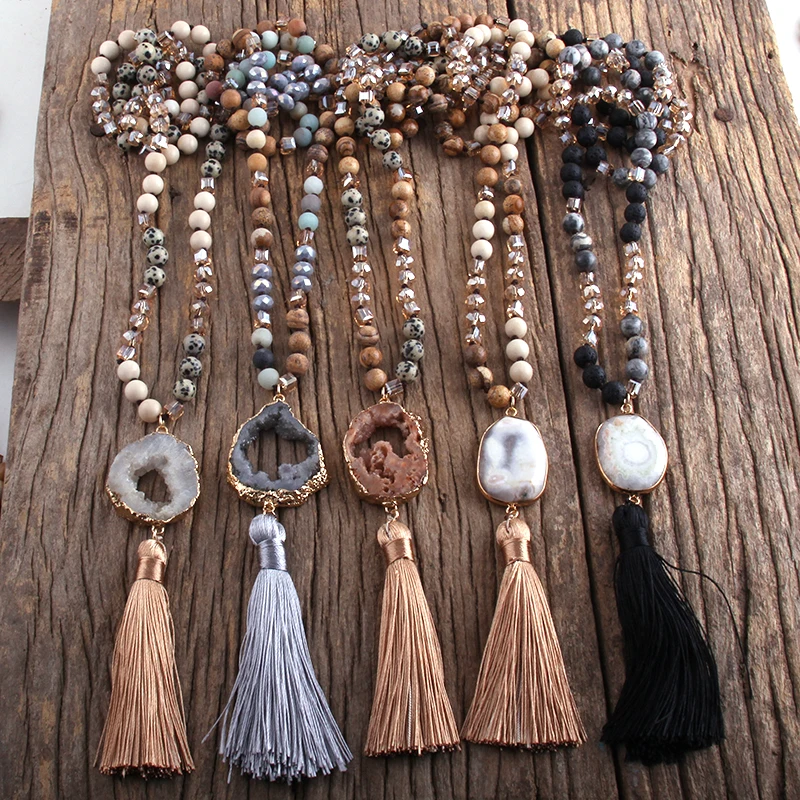 RH Fashion Bohemian Jewelry Natural Stones Crystal Knotted Druzy Stone Links Tassel Necklaces Women Gift Drop Shipping